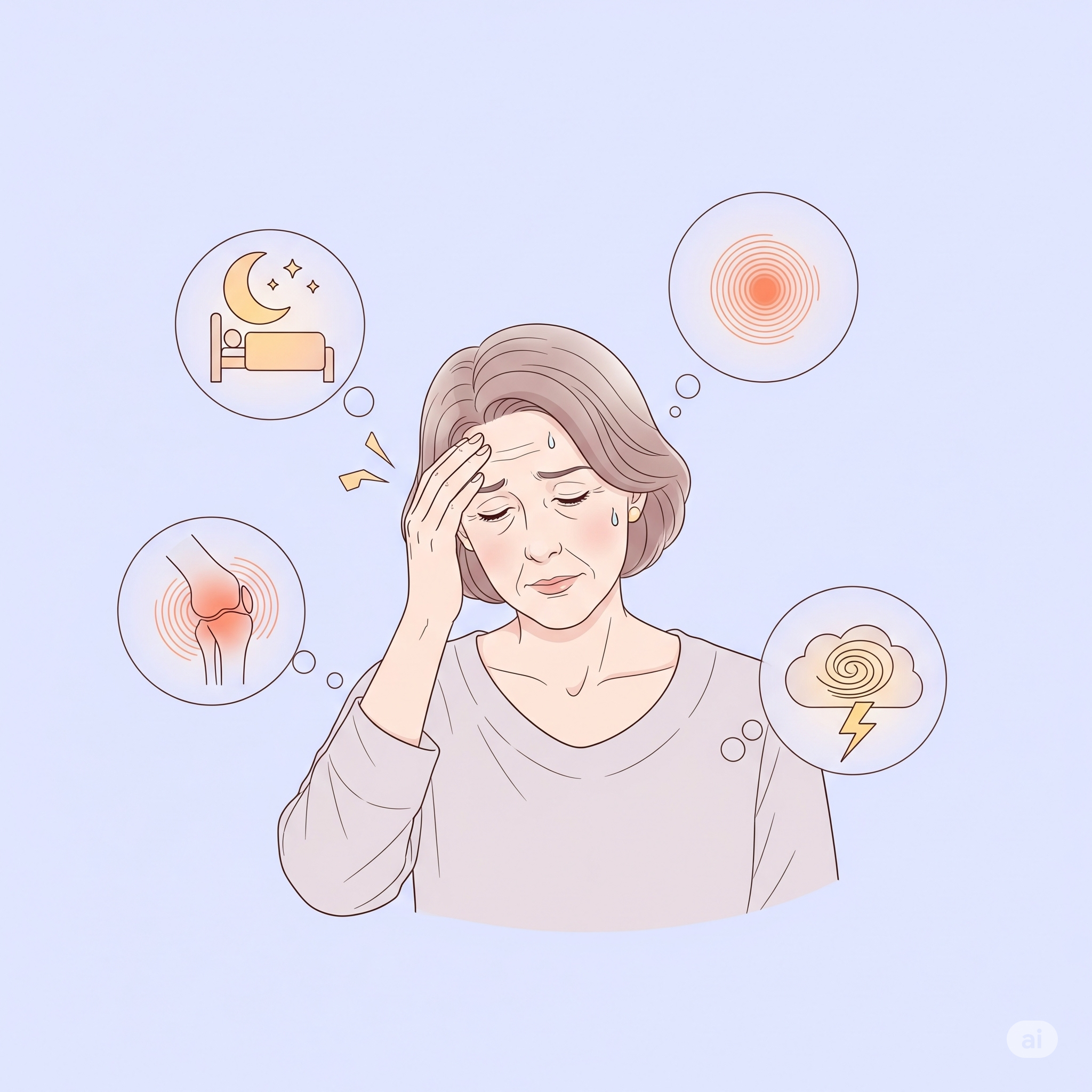 갱년기의 증상은 사람마다 다르지만, 아래와 같은 변화들이 공통적으로 나타나는 경우가 많습니다.