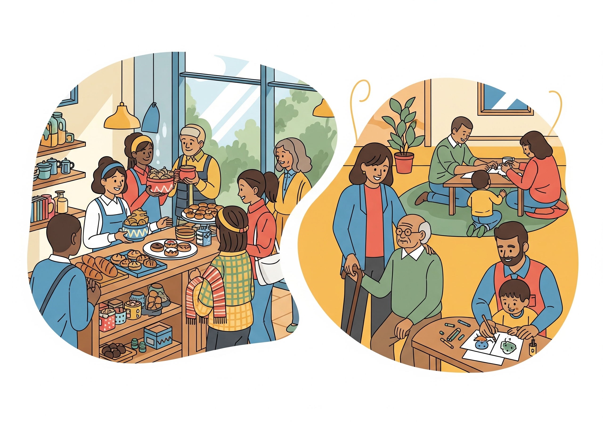 - 사회적기업 카페는 매출 일부를 장애인 고용, 청년 자립 지원, 지역 아동 무료 간식 제공 등에 씁니다.