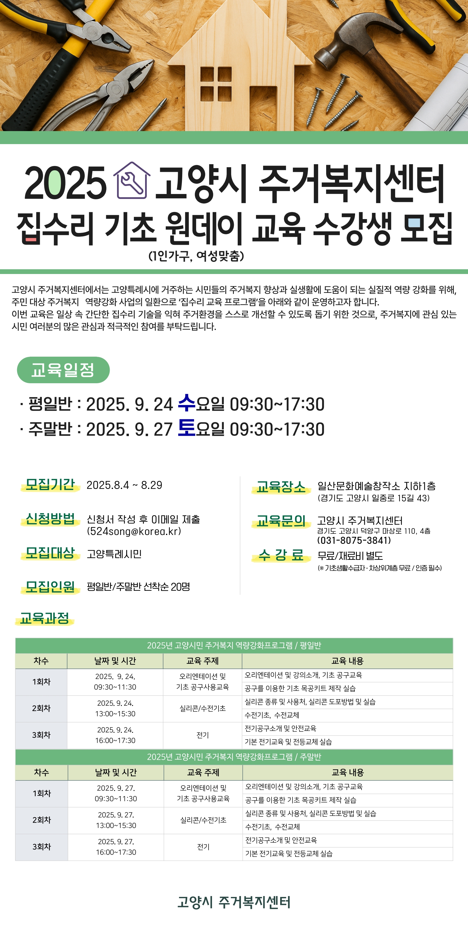 2025 고양시 생활 집수리 교육 수강생 모집!